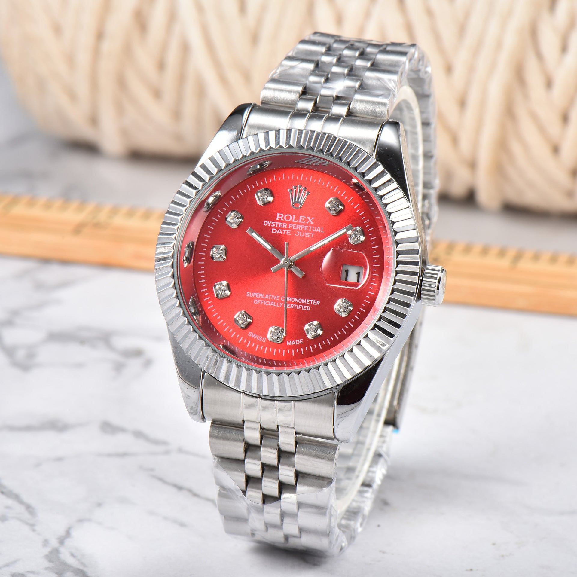⌚ ساعة رولكس بخلفية حمراء أنيقة